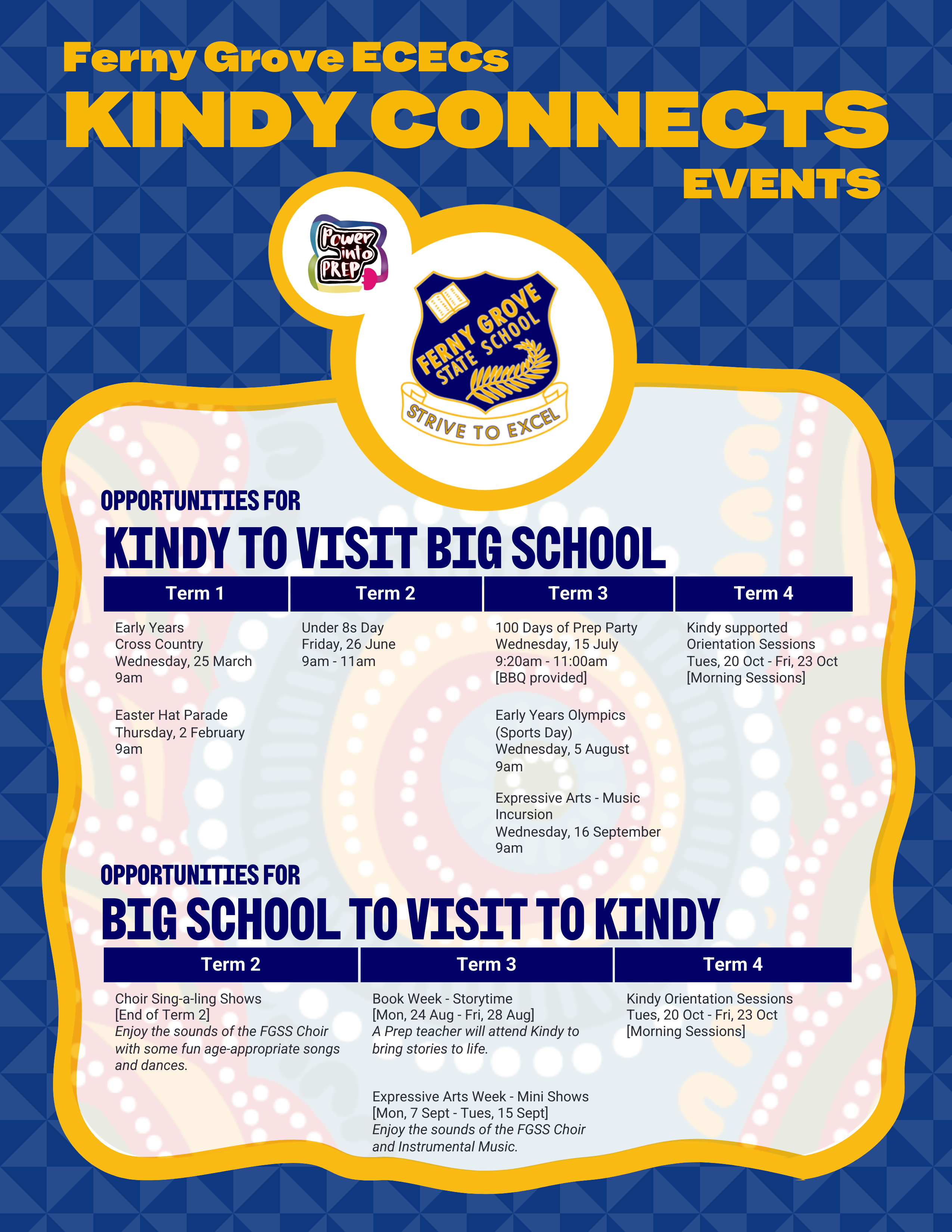 If you’d like to invite Ferny Grove State School to visit your Kindy Program or have a visit to Big School, please contact the Deputy Principal (Prep to Year 3) or email